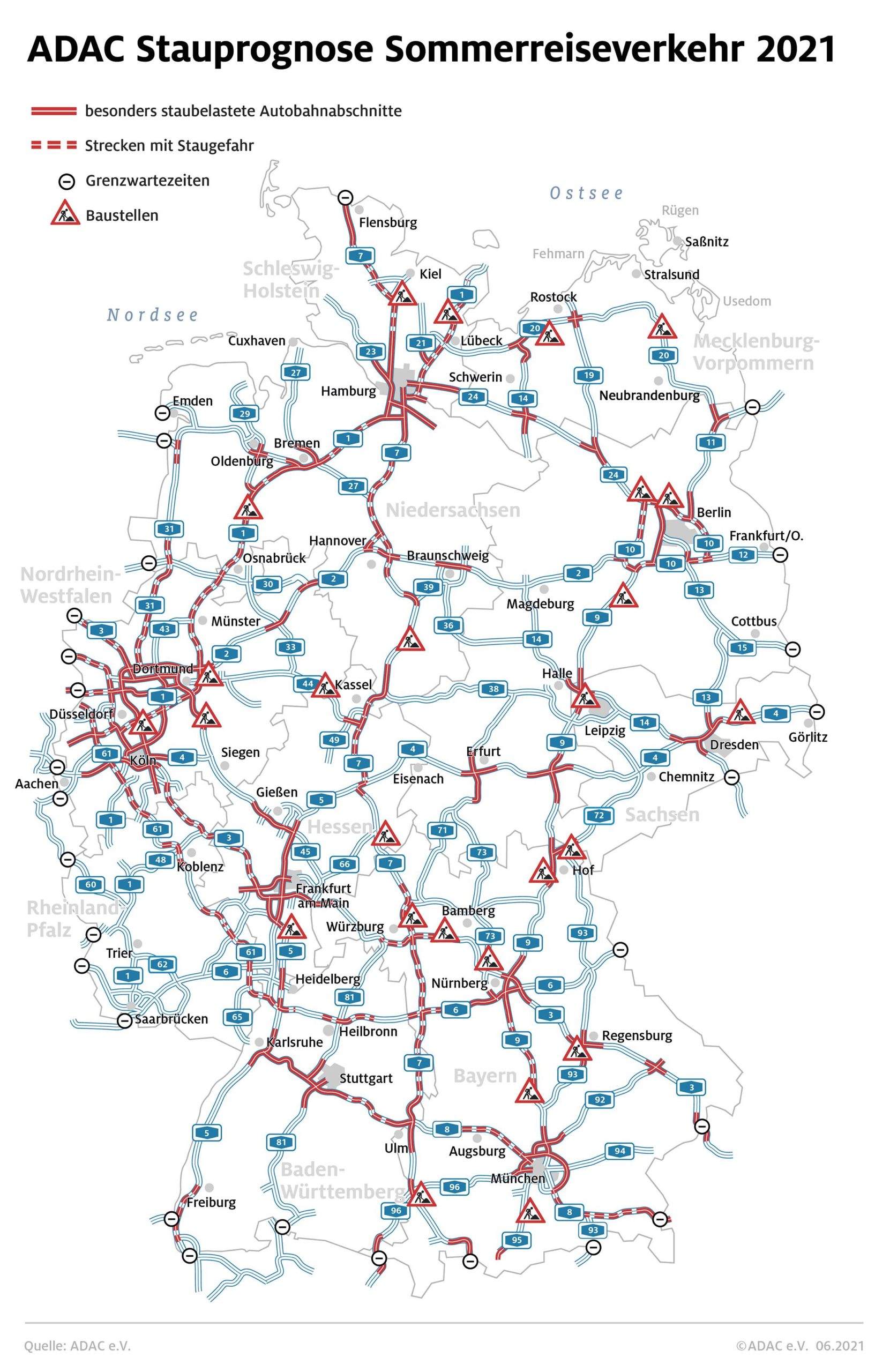 Auf diesen Autobahnen muss während des Sommerreiseverkehrs 2021 mit Staus gerechnet werden.