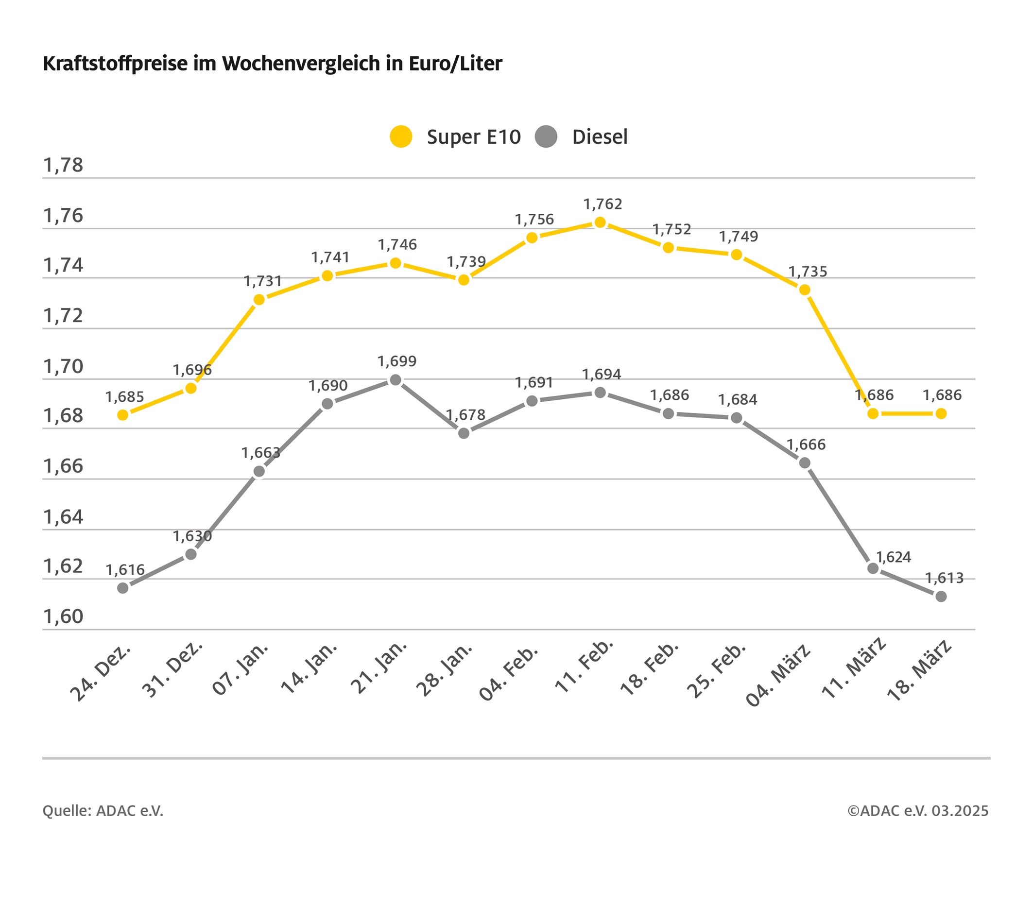 Ausführliche Informationen zum Kraftstoffmarkt und aktuelle Preise gibt es unter www.adac.de/tanken.